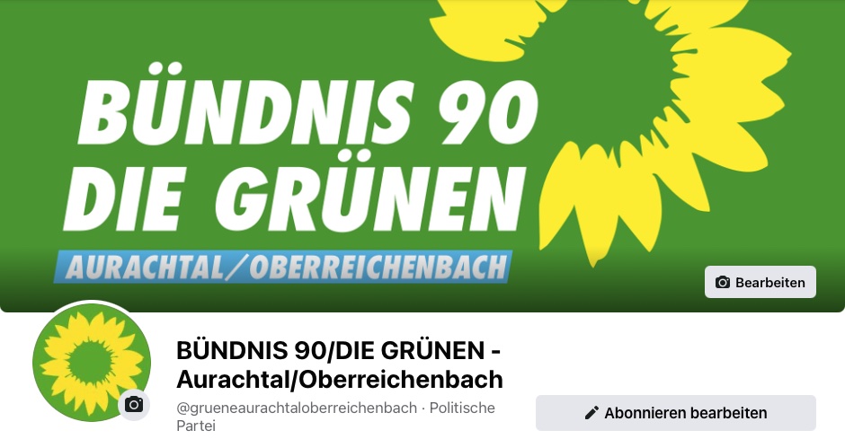 Die Facebook-Seite von unserem Ortsverband ist online: https://www.facebook.com/grueneaurachtaloberreichenbach.